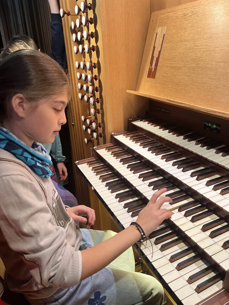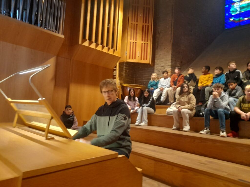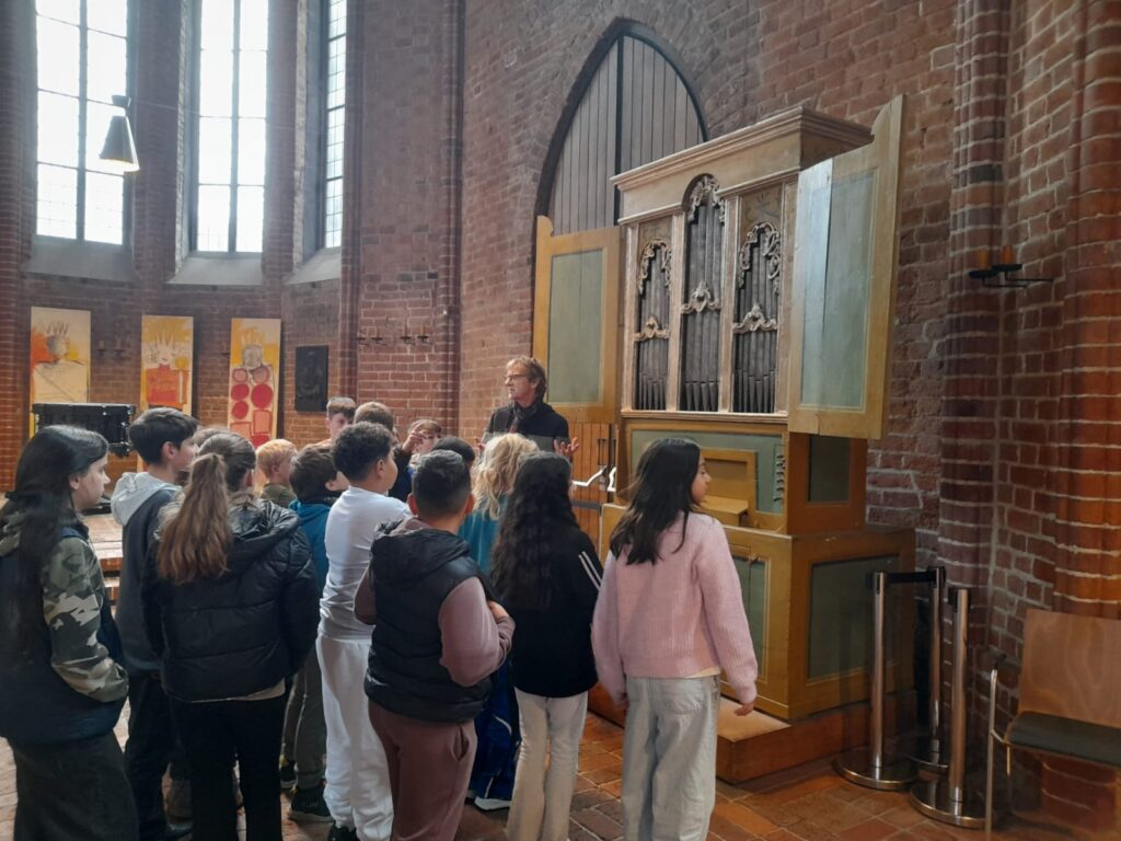 Dann ging es weiter mit den Orgelentdeckertagen: Am 8.10. (Klasse 5 Gym) und am 10.10. (Klasse 5 RS) machten wir einen Ausflug zur Marktkirche Hannover. Dort zeigte uns Prof. Ulfert Smidt anhand der kleinen italienischen Orgel von 1780 und der großen Goll-Orgel die Funktionsweise und die klanglichen Möglichkeiten einer Pfeifenorgel. An der großen Orgel durften mehrere Kinder auch selbst spielen und Register ziehen.