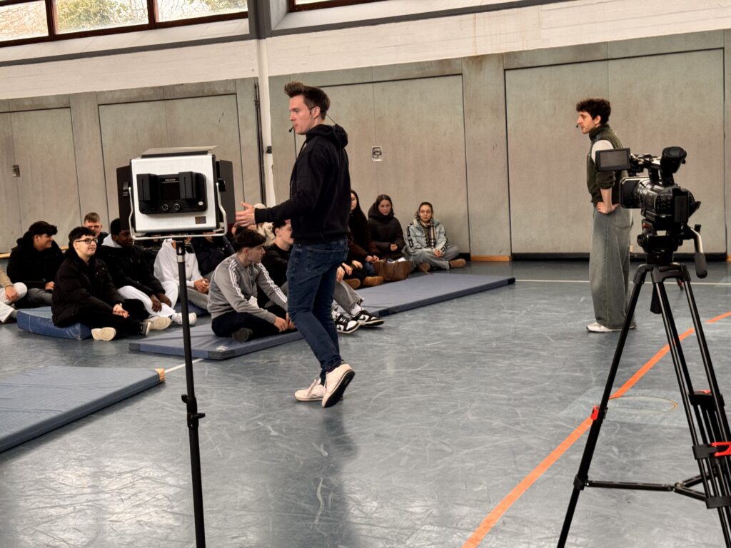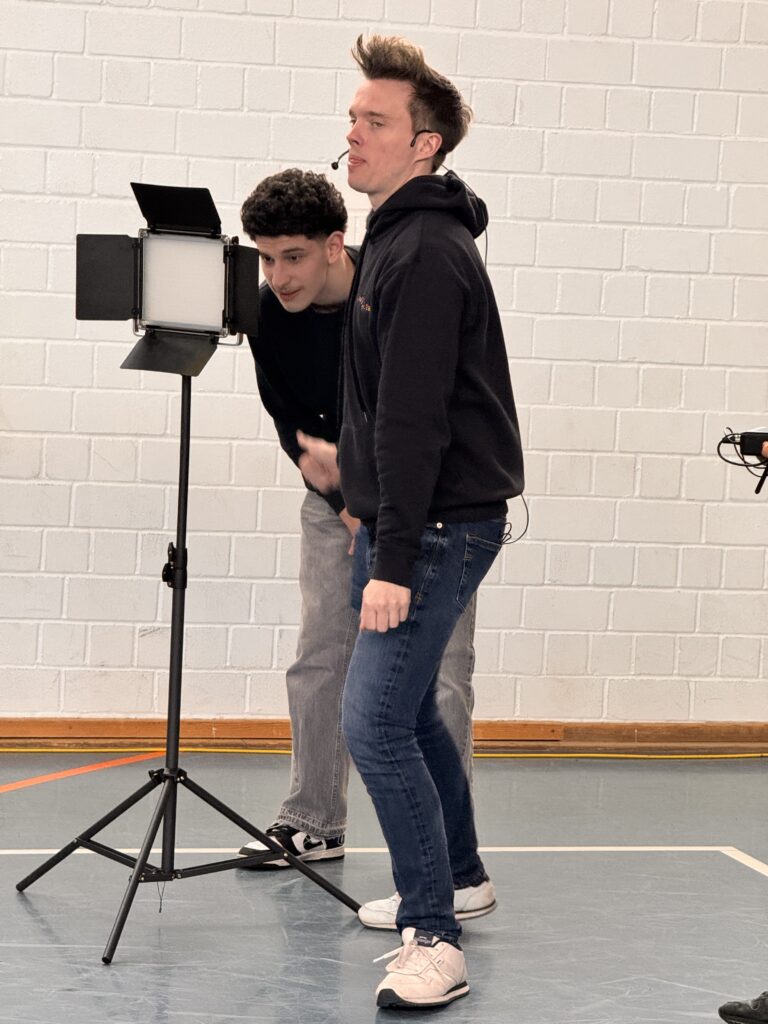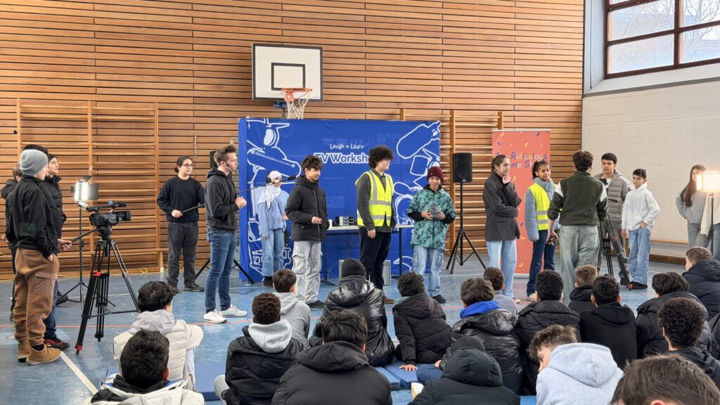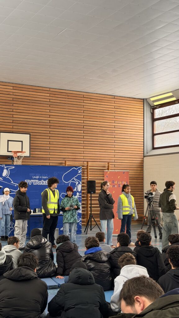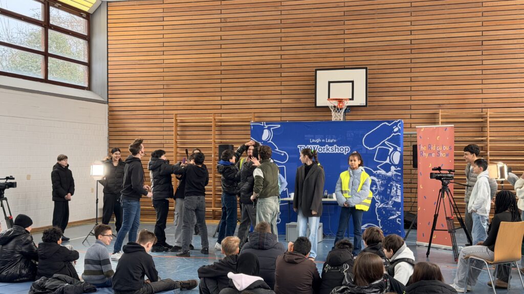 Unter professioneller Anleitung schlüpften die Schüler*innen in alle Rollen, die eine echte Show erst möglich machen. Ob an der Tontechnik, vor oder hinter der Kamera, auf dem Regiestuhl oder in der Chefetage der Produktion – es wurde improvisiert, gelacht und (fast) ausschließlich Englisch gesprochen.