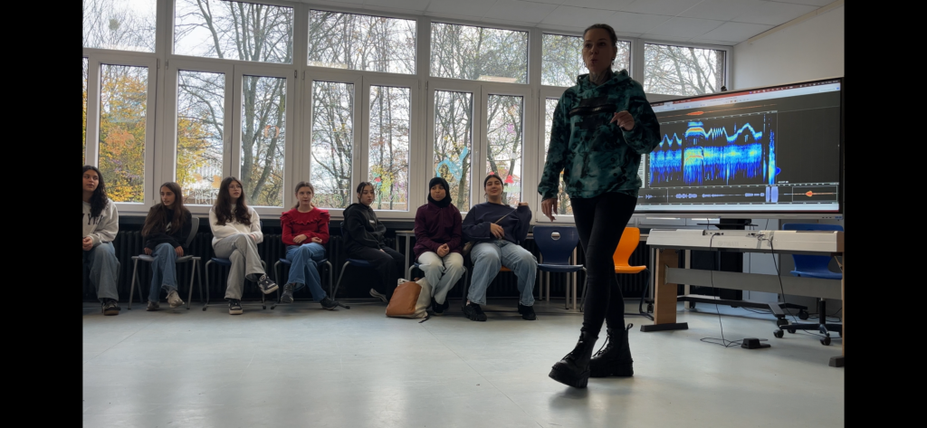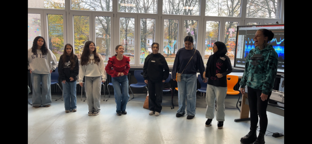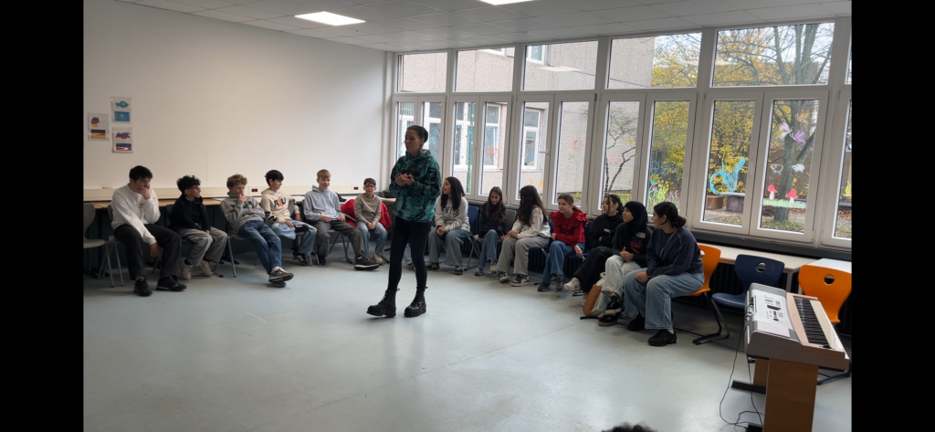 Als sie schließlich eintraf, erfüllte ihre Präsenz den ganzen Raum – selbstbewusst, herzlich und voller Energie. Während die Sängerin erzählt, probte und mit uns sprach, spürte man ihre Leidenschaft für die Musik in jedem Satz. Besondere beeindruckend war, wie offen und nahebar sie trotz ihrer Bühnenerfahrung wirkt. Die Mischung aus kraftvoller Ausstrahlung und echter Freundlichkeit machte den Tag zu etwas ganz Besonderem.