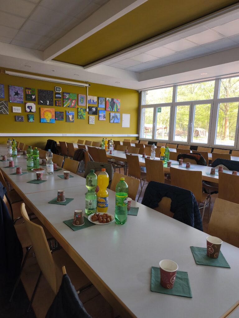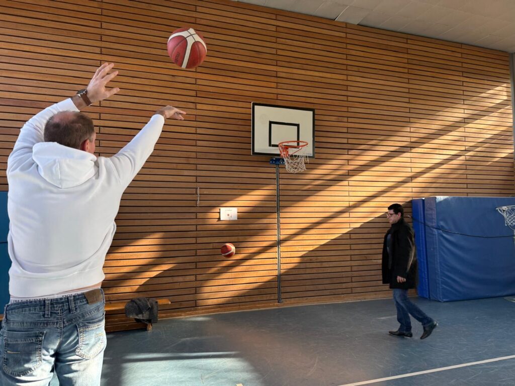 Wir haben gemeinsam gegessen, uns in Kennenlerngesprächen ausgetauscht und den Abend anschließend mit sportlichen Aktivitäten in der Sporthalle ausklingen lassen.