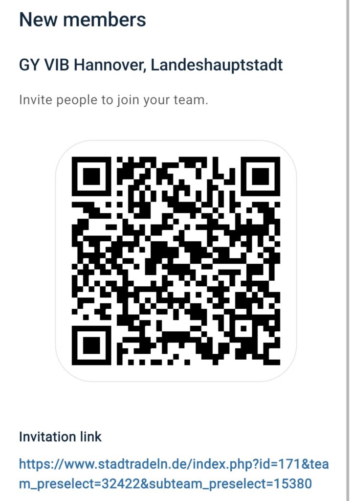 Oder man nutzt einfach den beigefügten QR-Code, um schnell zur Anmeldung zu gelangen. Wichtig ist: Das Schulradeln findet immer im 21-tägigen STADTRADELN-Zeitraum unserer Kommune statt. Sobald unsere Kommune freigeschaltet ist, können sich Radlerinnen und Radler registrieren und einem Team beitreten oder ein neues Team gründen. Macht mit und seid dabei! Der Zeitraum für Hannover lautet: 31.05. bis 20.06.2026.